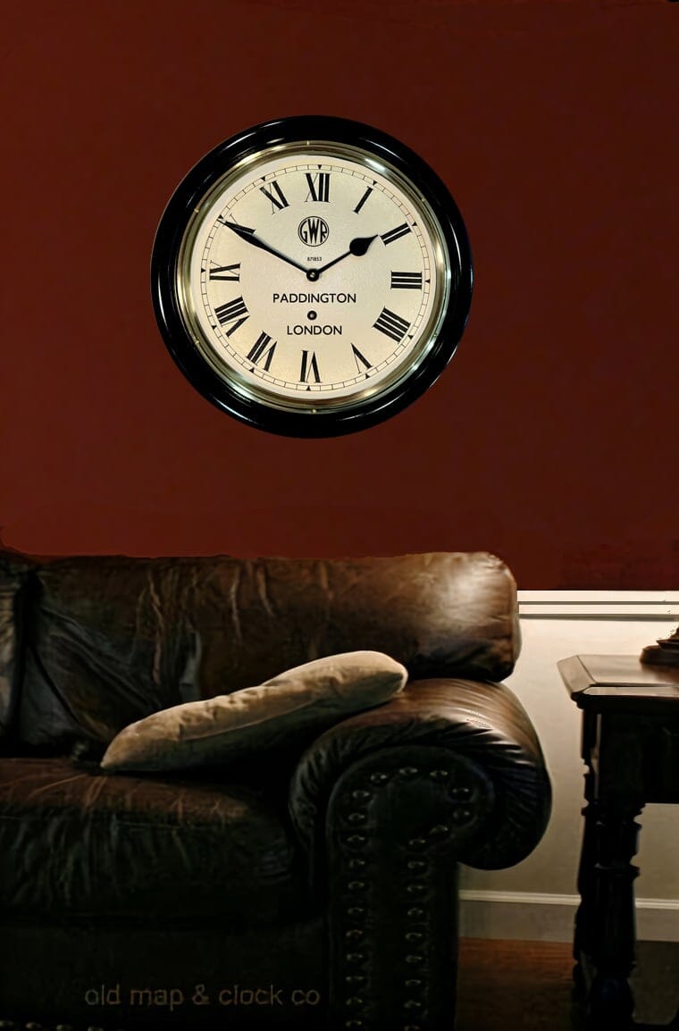 Bath Spa Station Clock — Medium Black Case Wall GWR Railway (16 inch)