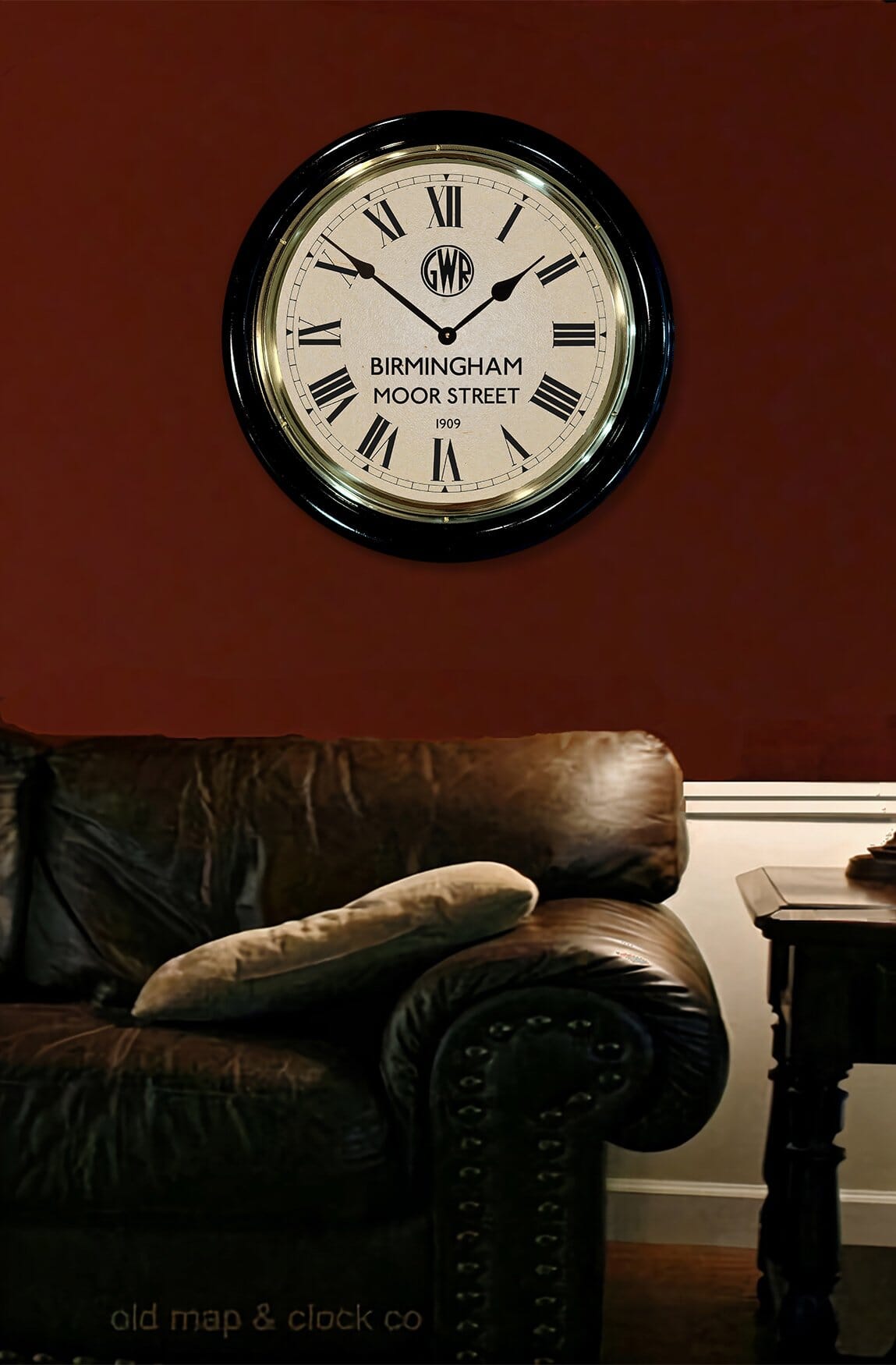 One of three main railway stations in Birmingham city centre alongside New Street and Snow Hill, it manages to blend historical and modern elements. Originally opened in 1909 by the Great Western Railway (GWR) as featured on our reproduction station clock. It was a terminus for local trains, the station was later expanded with through platforms in 1987. In 2002, the original station was restored and merged with the newer section, reviving its heritage while enhancing capacity. Since 2010, two of the original terminus platforms have been reopened, making the station a key hub for Chiltern Railways services from London Marylebone and local trains on the Snow Hill Lines. It is now Birmingham’s second busiest railway station.