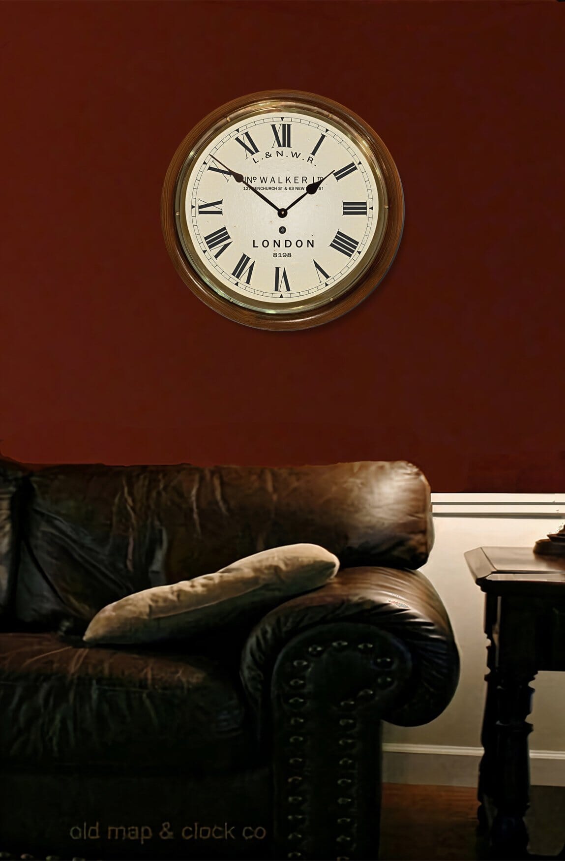 A quality reproduction that’s exclusive to The Old Map & Clock Company. Featuring an authentic distressed Roman dial face, unique rich grained case that’s applied by hand onto a heavy engineered wood base. The metal hands are in keeping with those of the period and a glass lens secured with a brass bezel add further authenticity. Powered by an accurate high torque German quartz movement that’s supplied complete with battery.