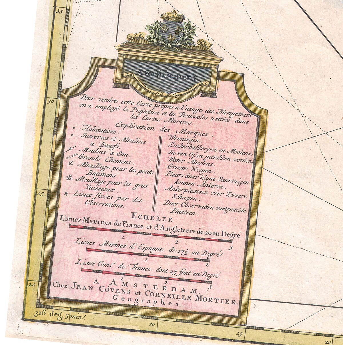The map was published in the Atlas Nouveau by Covens & Mortier, a prominent Dutch publishing house based in Amsterdam. Founded in the early 18th century, the firm was a continuation of the legacy of Pierre Mortier and became one of the most important map publishers in Europe. Johannes Covens I partnered with Cornelis Mortier to produce atlases that combined French geographical expertise with Dutch engraving and publishing craftsmanship. Their works, often adaptations or translations of leading French maps, made cutting-edge geographic knowledge accessible to a broader European audience. This Martinique map, issued in their 1742 atlas, is a testament to their role in disseminating Enlightenment-era geographic understanding.