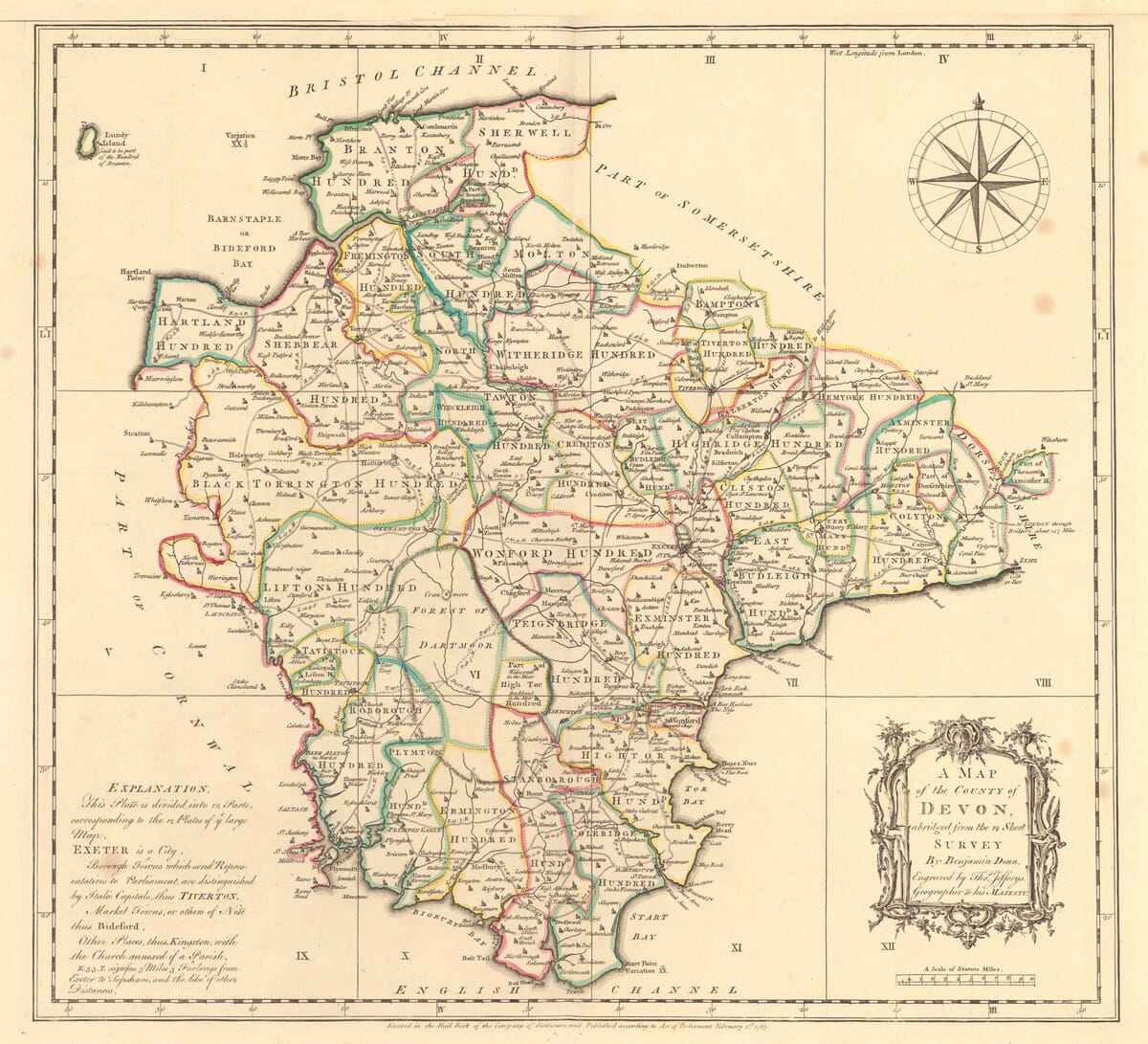 Vintage Map of Devon by Benjamin Donn (1729–1798)
