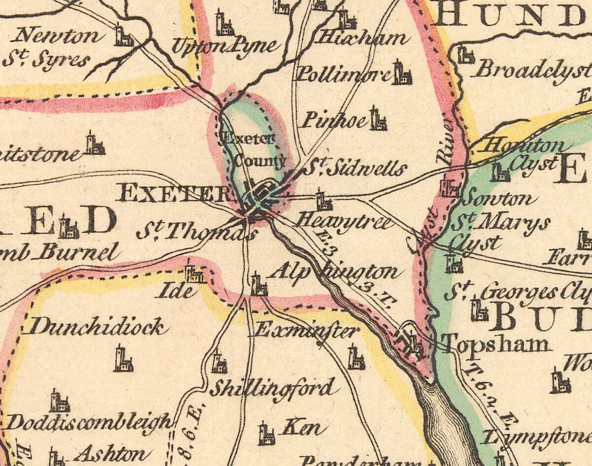 Dated 1765, this most detailed map of Devonshire, represents the county at a scale of one inch to one mile. This map was the result of a five-year survey during which Donn reportedly measured over 6,000 miles of roads and rivers. It was the first county map to receive the Royal Society of Arts’ award for the best one-inch-to-the-mile survey.