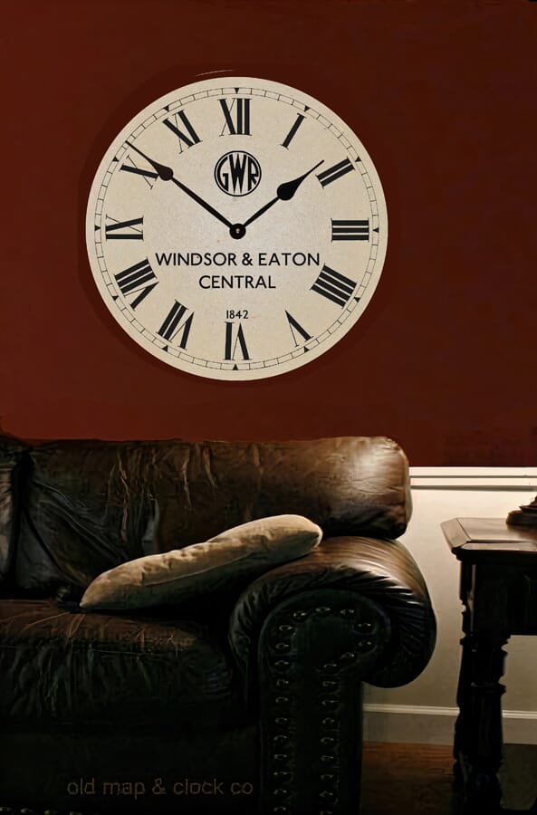 Windsor & Eton Central station, located in the heart of Windsor, Berkshire, England, stands as a testament to the rich history of the town and its transportation heritage. Situated on Thames Street, directly across from Castle Hill, the station offers not only a functional transport hub but also a glimpse into the past, being just 400 meters away from Windsor’s other station, Windsor & Eton Riverside. This station serves as the terminus for the Slough to Windsor & Eton line, operated by Great Western Railway whose iconic logo we feature on our souvenir of Windsor Station clock, and has long been a vital part of the town’s infrastructure.